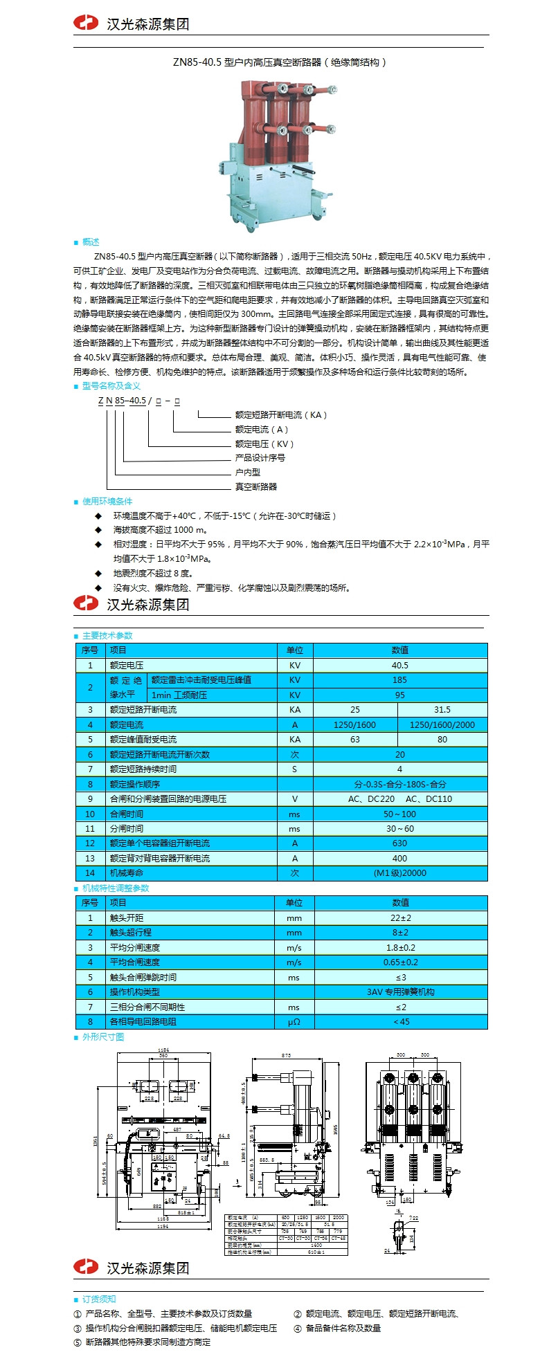 | ZN85-40.5型戶內高壓真空斷路器(絕緣筒結構) | |