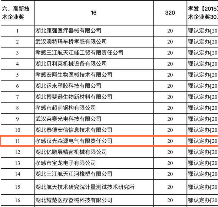 熱烈慶賀孝感漢光森源電氣有限責任公司在政府優質企業評選活動中榮獲高新技術企業獎、知識產權示范企業以及工業企業發展壯大獎三大獎項,并喜獲共計26萬元作為企業持續發展戰略資金。